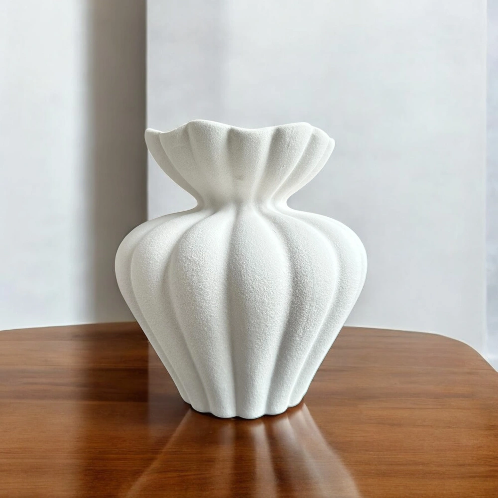 Vas ini bukan hanya berfungsi sebagai tempat tanaman, namun juga dapat menjadi elemen dekorasi yang memperkuat karakter ruangan. Material keramik yang kokoh dan tahan lama menjadikannya pilihan tepat untuk menghiasi meja tamu, rak, atau sudut ruangan yang membutuhkan aksen modern. Warna putihnya yang elegan memberi kesan mewah tanpa berlebihan.